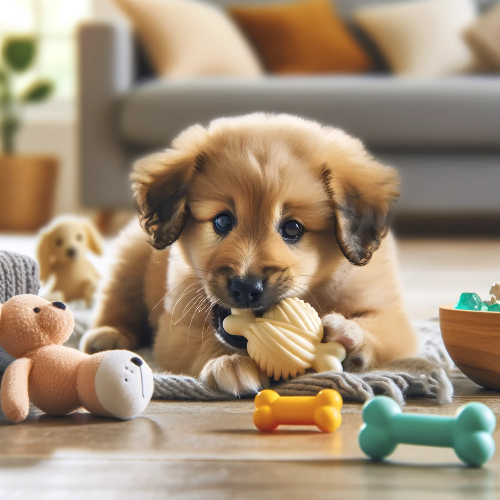 - 다양한 질감과 크기의 씹을 수 있는 장난감을 제공해 주세요. 이는 강아지가 적절한 물체를 씹어 잇몸의 불편함을 완화하는 데 도움을 줍니다. 식용이 가능하고 소화가 잘 되는 재료로 만들어진 장난감을 선택하는 것이 좋습니다.