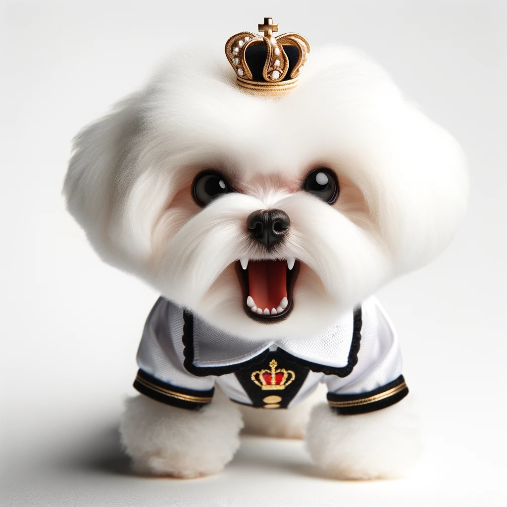 말티즈는 과거 귀족들과 함께 생활했던 고급스러운 견종입니다. 그래서인지 자신이 여전히 왕족이라고 생각하는 것 같아요. "이런, 인간! 내 밥그릇이 아직 반도 차지 않았잖아!"라는 표정을 지을 때가 많죠. 그래서 때로는 까다롭고 제멋대로인 것처럼 보일 수도 있습니다.