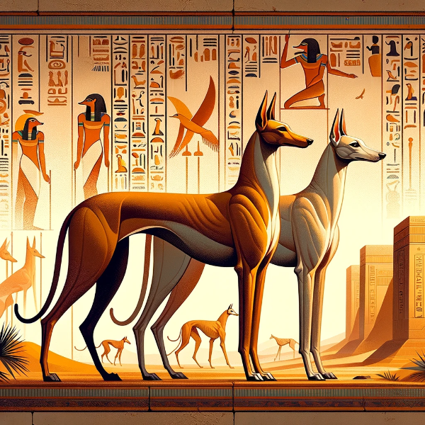 그레이하운드도 고대 이집트 벽화에서 자주 나타나는 강아지 유형입니다. 그레이하운드는 살루키와 유사한 체형을 가지고 있지만, 보다 근육질이며 직선적인 라인을 가진 것이 특징입니다. 이 품종은 빠른 속도와 뛰어난 반응성으로 알려져 있으며, 고대 이집트인들은 이런 특성을 사냥과 경주용으로 활용했습니다. 그레이하운드는 귀족과 왕실에서 특히 사랑받았으며, 벽화 속에서도 그들의 고귀함과 우아함이 강조되어 묘사되었습니다.