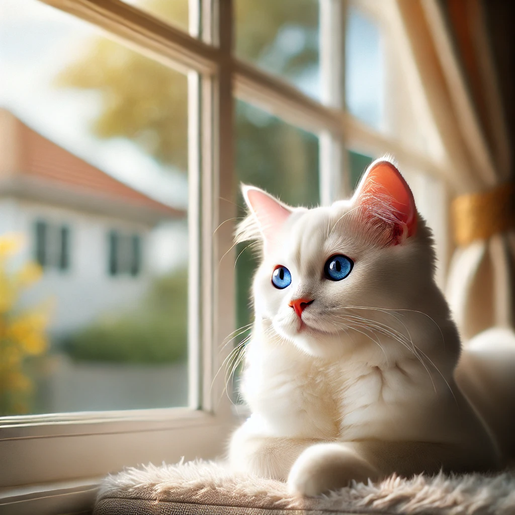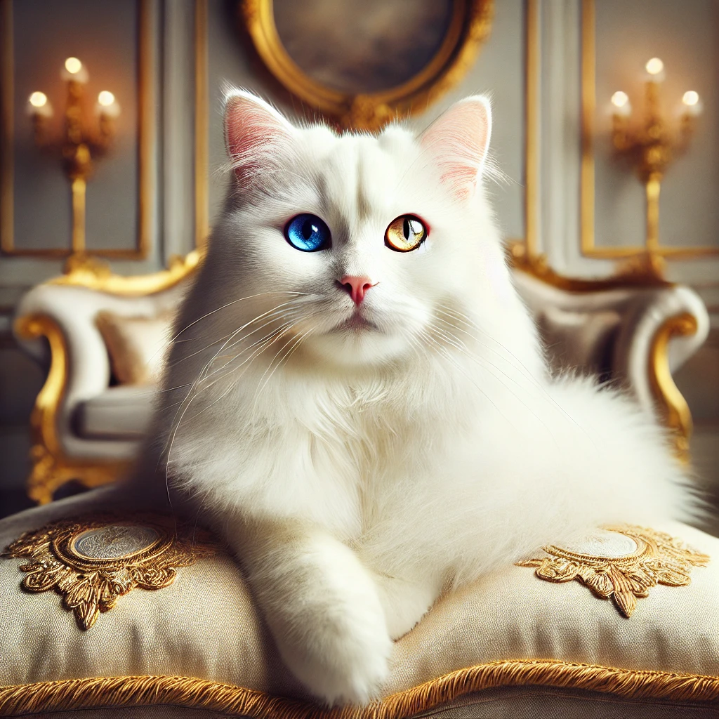 카오마니 고양이의 가장 큰 특징은 순백의 털과 이색증을 자주 보이는 눈입니다. 카오마니의 눈은 양쪽이 서로 다른 색깔로 나타나는 경우가 많으며, 대표적으로 파란색과 노란색, 또는 호박색의 눈을 가질 수 있습니다. 이 독특한 외모는 카오마니를 더욱 신비롭고 매력적으로 보이게 합니다. 다만, 두 눈이 같은 색을 가진 카오마니도 있습니다.